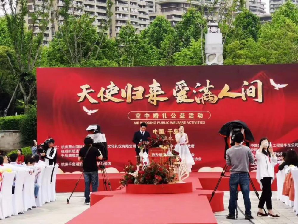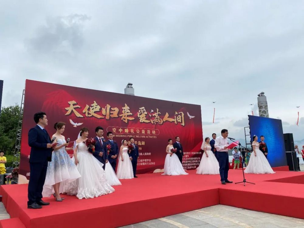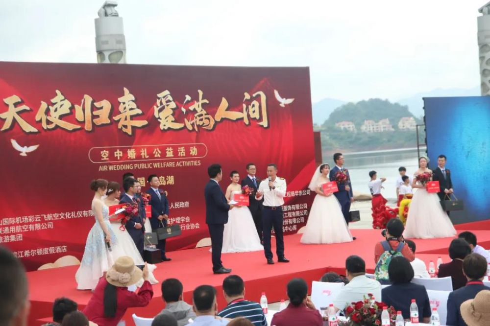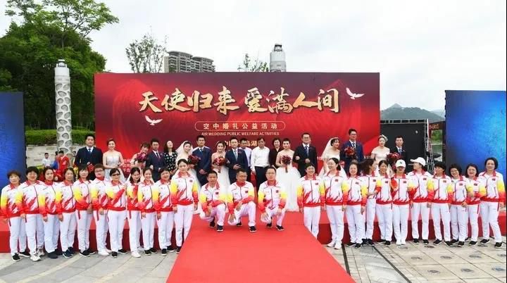這是“天使歸來,愛滿人間”空中婚禮公益活動現(xiàn)場
