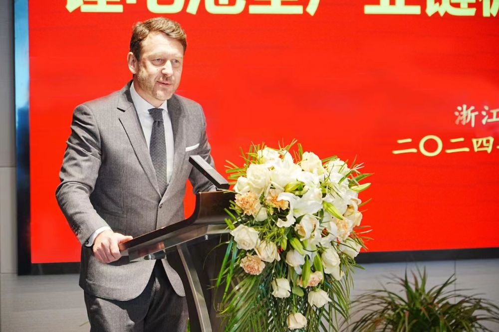 2024年1月9日上午,英聯(lián)鋰能總經(jīng)理蔣英與Rhenus Automotive(瑞諾司汽車)集團(tuán)全球CEO、瑞諾司汽車投資(上海)有限公司董事長(zhǎng)Marcus Ewig(馬庫斯·埃維格)雙方代表,在建德市委書記富永偉,市委常委、開發(fā)區(qū)黨工委書記蔣哲遠(yuǎn)見證下簽約,Rhenus Automotive(瑞諾司汽車)集團(tuán)亞太區(qū)總經(jīng)理、瑞諾司汽車投資(上海)有限公司總經(jīng)理Jiani Wu(烏迦旎),浙江電聯(lián)集團(tuán)有限公司總裁、英聯(lián)鋰能董事長(zhǎng)宋曉剛出席簽約儀式。
